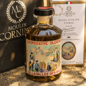 Le Moulin CORNILLE est connu depuis toujours pour la qualité et la particularité de son huile avec son goût qualifié aujourd‘hui d’«olives maturées» ; ses arômes sont obtenus grâce à sa méthode de fabrication très traditionnelle et ancestrale comprenant une étape de maturation des olives durant 4 à 8 jours dans nos greniers, et quelques secrets de fabrication.